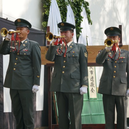 慰霊祭には、一般市民の皆様も自由に参加して頂けます。多くの皆様のご参加をお願いいたします。また、慰霊祭当日には、会場内で自衛隊の日頃の活動を紹介する写真の展示や慰霊祭終了後、当墓地に係るテーマでの講演会も開催いたしております。なお、慰霊祭の前日には、各団体ボランティアの方々により墓地の清掃並びに全墓碑に花が供えられています。
